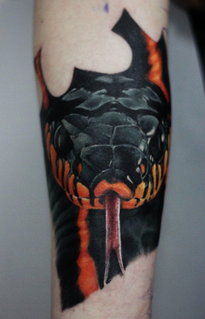 Тату змея имеет различные толкования в разных странах. Повлиять на значение нательного изображения также способны дополнительные элементы, выбранный для рисунка цвет.