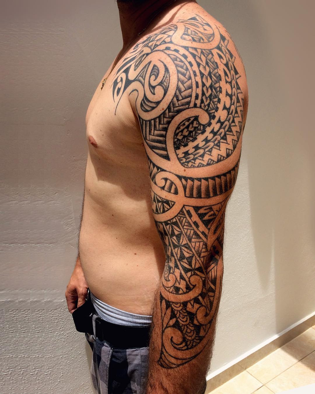Среди островных наколок есть несколько, особенно популярных у европейцев и американцев. Востребована, к примеру, тату «Полинезия рукав». Его абстрактные на первый взгляд мотивы и однотонная гамма привлекают мужчин.