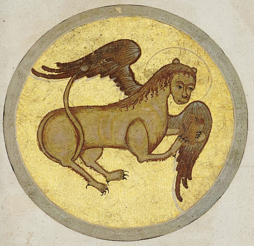 Считалось, что лев спит с открытыми глазами, и поэтому символизирует неусыпную бдительность, духовную бдительность и крепость. Лев, как часовой, поддерживает устои церкви. Кроме того, существовало поверье, что львята рождаются мертвыми, и жизнь вдыхается в них родителем, поэтому лев является символом воскресения. Будучи зверем-одиночкой, лев означает отшельника и одиночество. Лев – эмблема святого Марка, так как его Евангелие подчеркивает царственную природу и величие Христа. Он является также эмблемой святых Адриана, Евфимии, Иеронима, Марии Египетской, Павла Отшельника, Приски, Феклы. В катакомбных изображениях история о Данииле в логове львов символизирует спасение Господом его подданных.