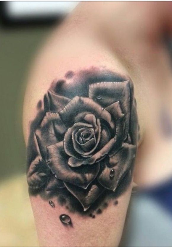 Тату на плече – самый популярный вариант, который никогда не выйдет из моды. Правильная округлая форма этой области позволяет придать черной розе реалистичности и объема. Благодаря большому пространству можно выбрать сложный, необычный, не второстепенный эскиз.
