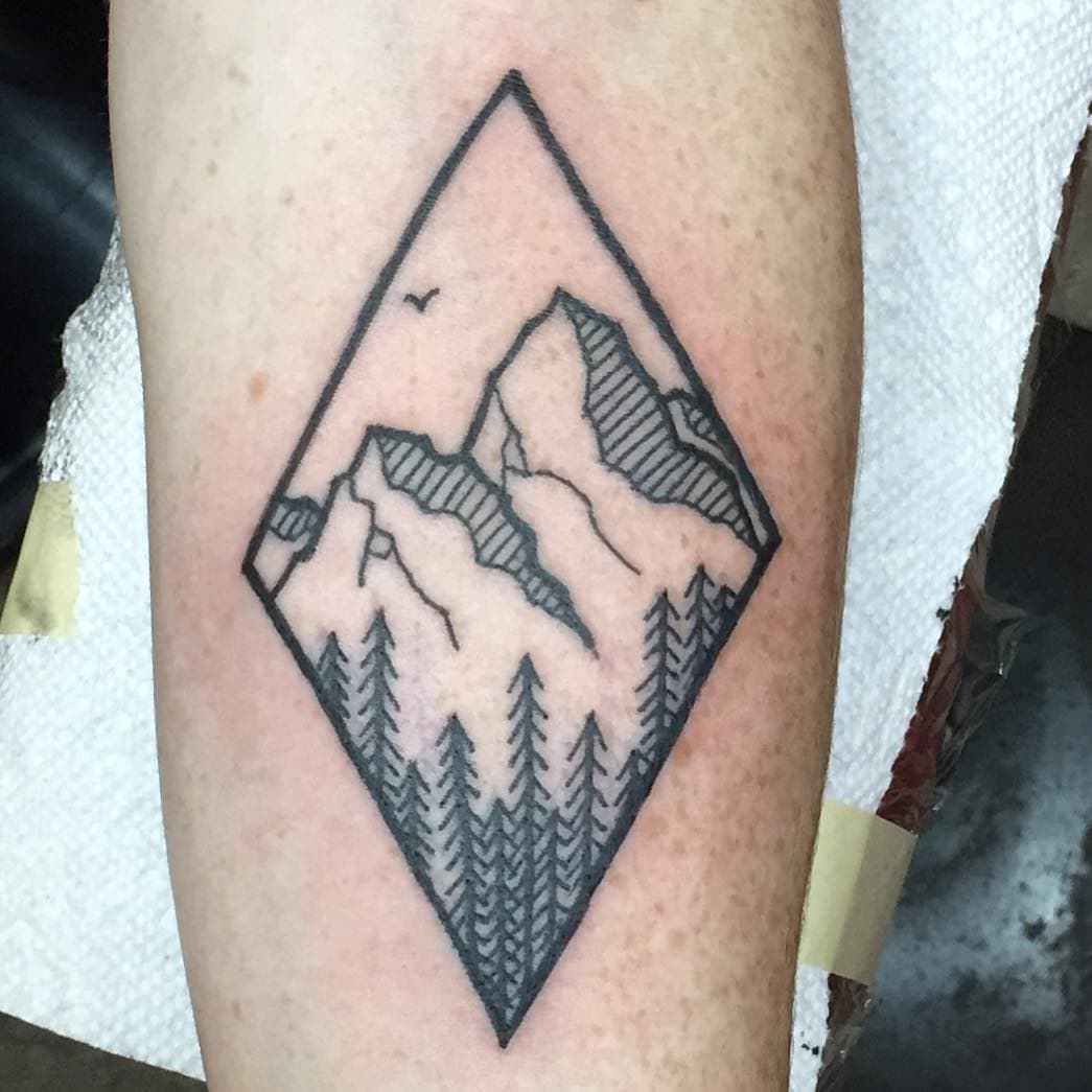 А горы образуют идеальные минималистичные геометрические татуировки. Сегодня татуировщики также запечатлевают их в геометрических формах для создания романтических рамок для кожи.