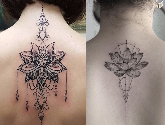 6. Татуировки лотоса на спине для мужчин и женщин.