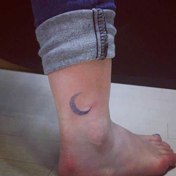 Полумесяц — популярный выбор для татуировки в минималистском стиле с простым контуром или в виде сплошного цвета. Мини-татуировки хорошо смотрятся чуть ниже лодыжки, на внутренней стороне запястья и за ухом.