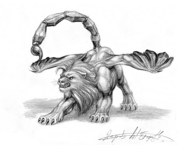 Мантикора — легендарное существо Центральной Азии, своего рода химера, о которой иногда говорят, что она связана со Сфинксом. Его часто боялись как жестокого и дикого, но только когда мантикора была включена в европейскую мифологию в средние века, она стала рассматриваться как предзнаменование зла.