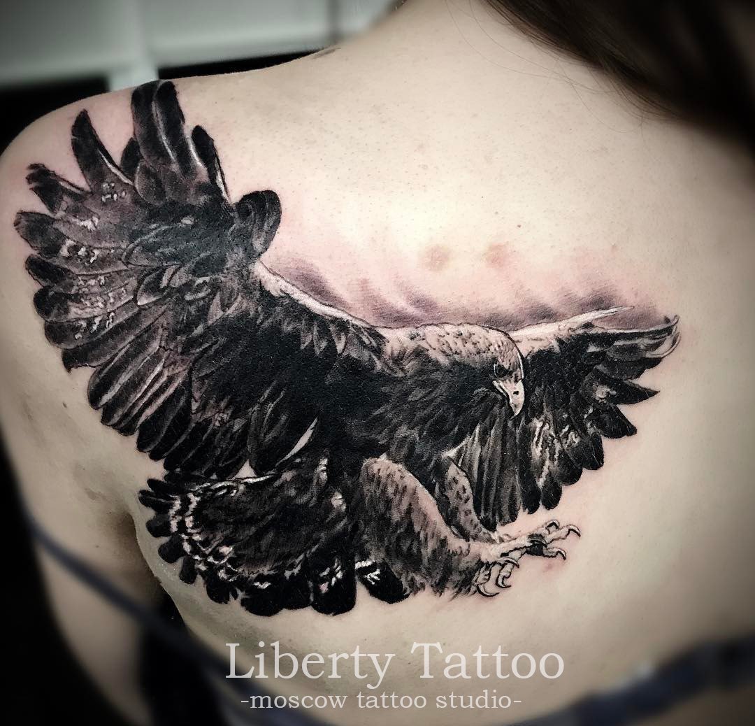 Татуировка черного орла служит для демонстрации силы и величия. По этой причине большинство этих рисунков выполнено с большим количеством деталей в черном цвете.