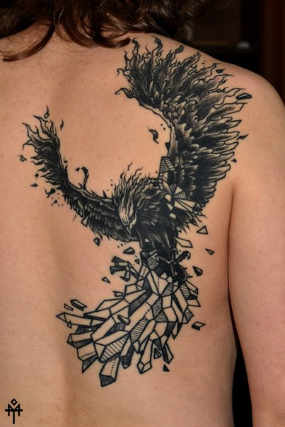 Для людей татуировки птицы в огне означает стойкость, бесстрашие, целеустремленность ни смотря не на что.