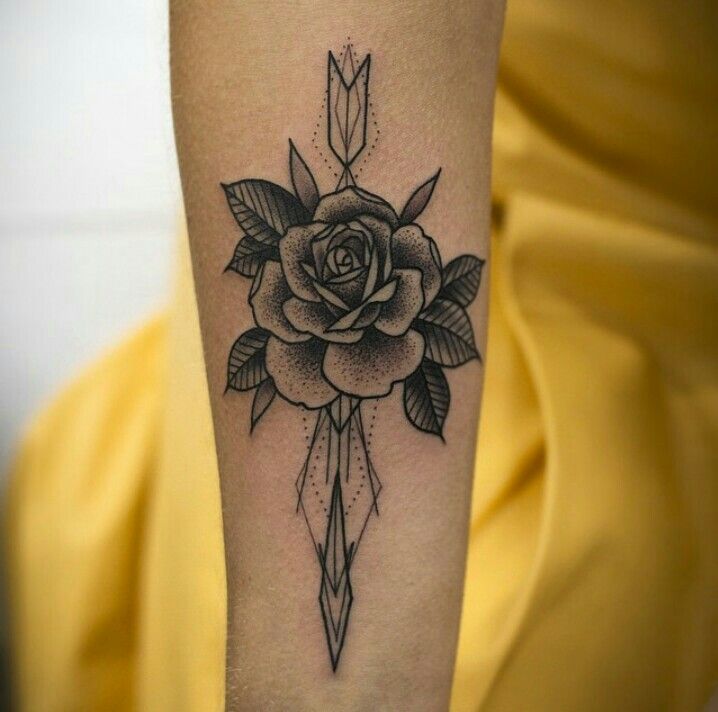 Роза , пронзенная кинжалом или в сопровождении одного имеет разные значения, это может означать совершенство или потерю страсти. Вы можете прочитать больше об этом в нашей статье Значение татуировки кинжала.