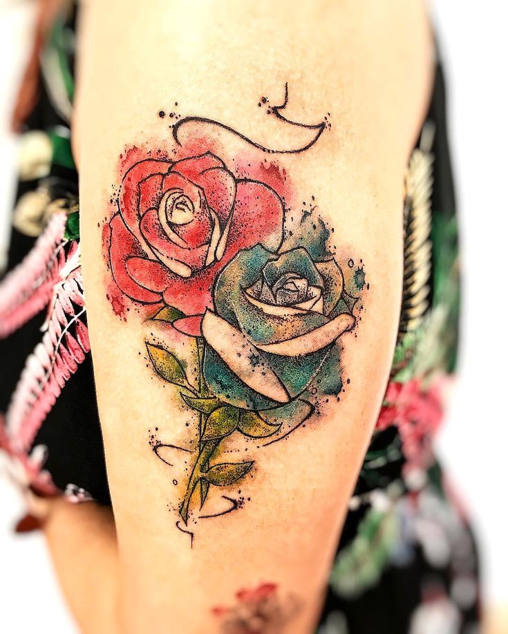 Татуировка розы довольно распространена среди женского населения, хотя этот цветочный эскиз не исключено увидеть и у мужчин на теле. Изысканное тату розы означает настоящую любовь и не зависит от размера, цветовой палитры и месторасположения. Европейцы ассоциируют розу с чистотой, а верующие видят связывающие нити между тату и кровью распятого Иисуса Христа. Китайцы трактуют смысл розы на теле как символ анархии и гордости. А в Египте розу наносят на часть тела в качестве символа материнства. В России значение розы на теле более широкое. В общей цветочной композиции смысловую нагрузку несет каждый элемент:
