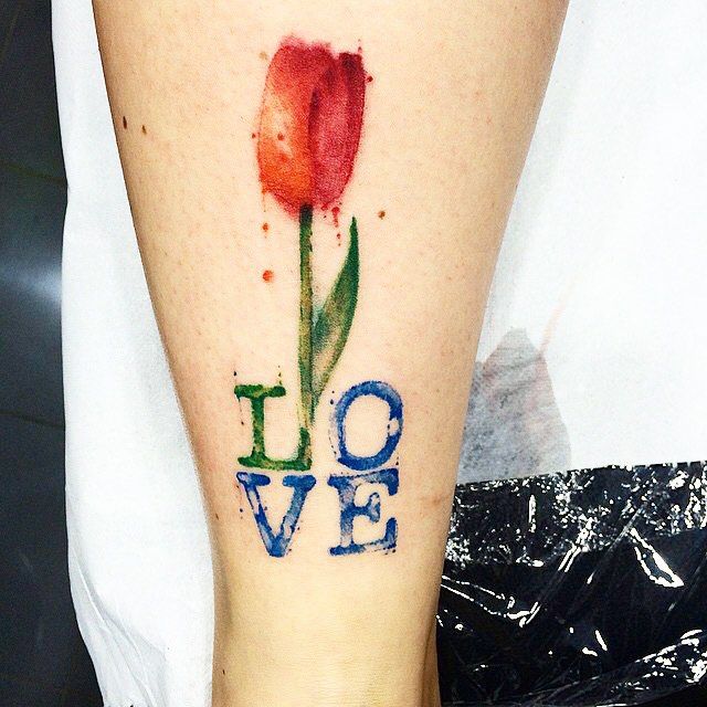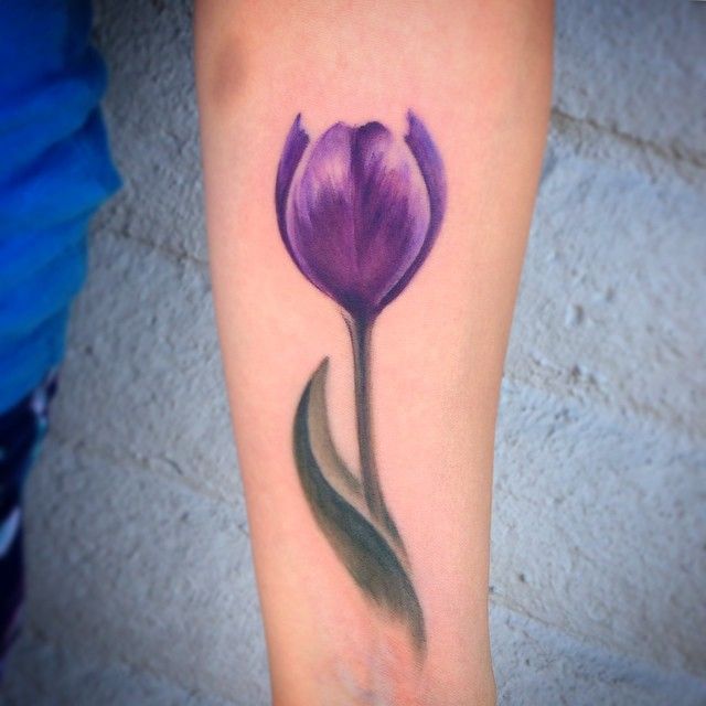- Тату красный или фиолетовый тюльпан означает настоящую любовь и страсть.