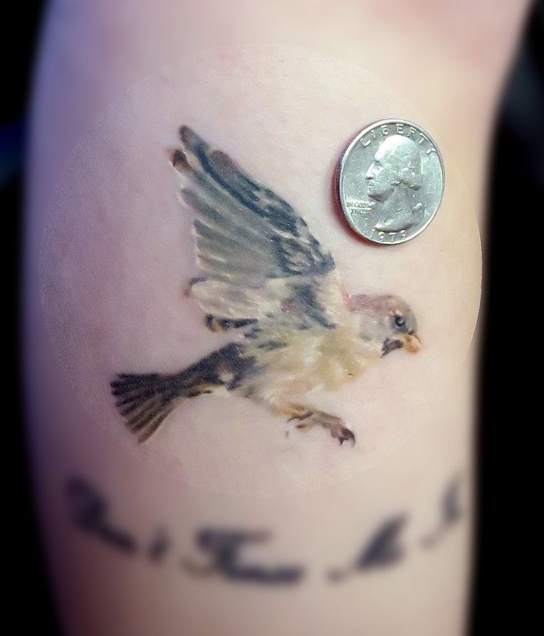 6. Маленькие идеи татуировки воробья Источник: @colinwhitfieldtattoos через Instagram коллекционеров.