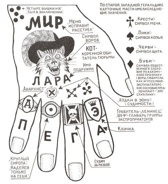 - Буквы. Обычно люди наносят на пальцы первую букву имени любимого человека или родных людей, чтобы другие знали, кто для них особенно важен. Мужские и женские тюремные татуировки, в свою очередь, подразумевают нанесение на все пальцы имени близкого человека полностью.
