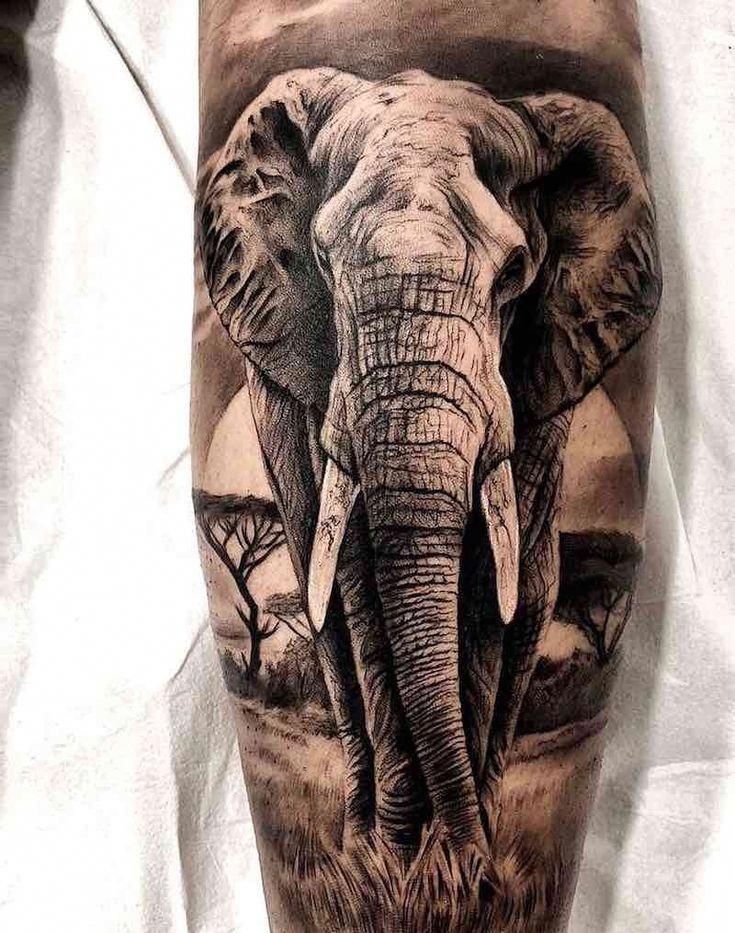 Однако татуировки слонов можно размещать и на любой другой области тела.