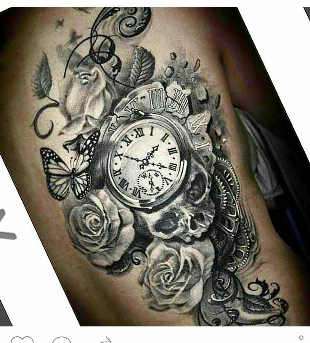 Роза и часы образуют идеальную татуировку, изображающую любовь к жизни.Эта татуировка могла обозначать время рождения любимого человека или время любого другого памятного события. Прямо под часами есть иллюстрация точек компаса, которая обозначает чувство контроля и стабильности?