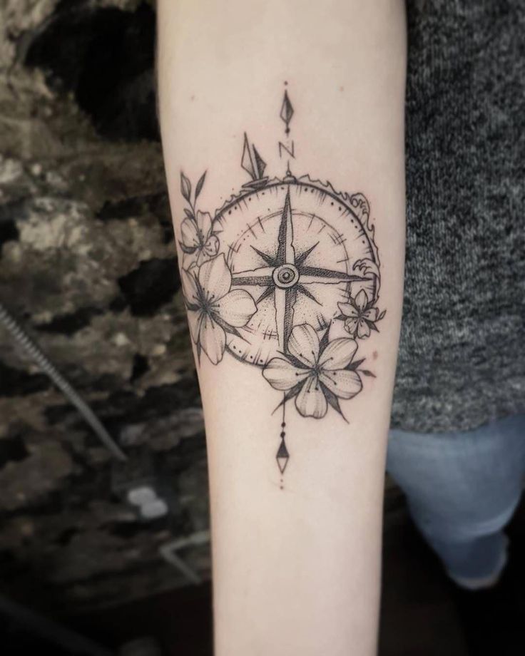 Татуировки с компасом на предплечье часто бывают большими и содержат большую сцену о море или о том, что время и ваш жизненный путь являются частью большой схемы, которую мы не можем контролировать. над.