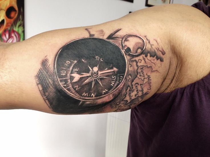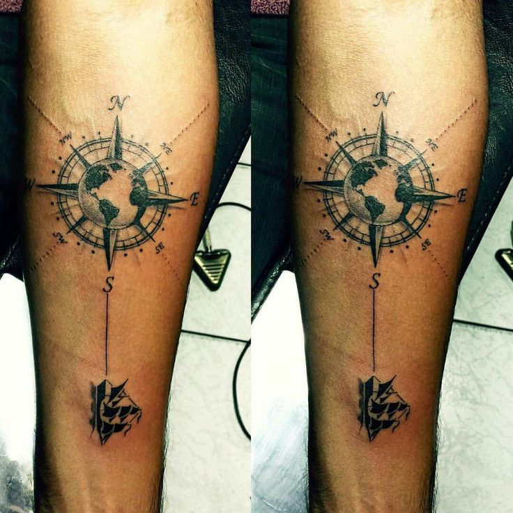 Если вы думаете, что сам по себе компас, создает слишком маленький или недостаточно символически дизайн, чтобы соответствовать вашим ожиданиям, посмотрите на этот вариант карты с компасом. Одна из лучших вещей в этой татуировки – то, что выбранная вами часть карты мира добавит татуировке дополнительное значение – вы можете выбрать место, которое очень много для вас значит.