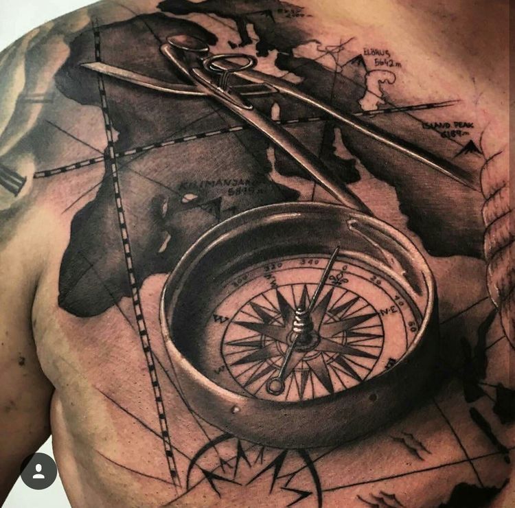 Значение тату компасаКак все мы знаем, компас используется в навигации для определения направления на север, юг, восток и запад. Это позволяет пользователю определить свое местоположения относительно этих направлений, и с помощью карты передвигается по неизвестной местности.