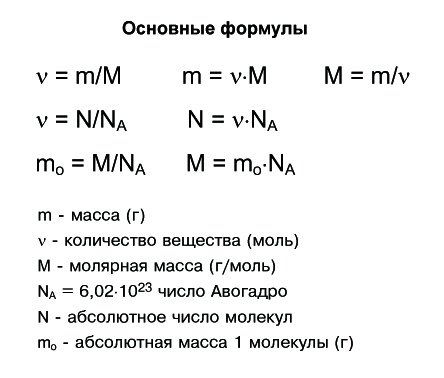 В химии важно точно измерять массу веществ, вступающих в реакцию и получающихся в результате нее. По определению моль является единицей количества вещества в СИ. Один моль содержит точно 6,02214076×10²³ элементарных частиц. Это значение численно равно константе Авогадро NA, если выражено в единицах моль⁻¹ и называется числом Авогадро. Количество вещества (символ n) системы является мерой количества структурных элементов. Структурным элементом может быть атом, молекула, ион, электрон или любая частица или группа частиц.