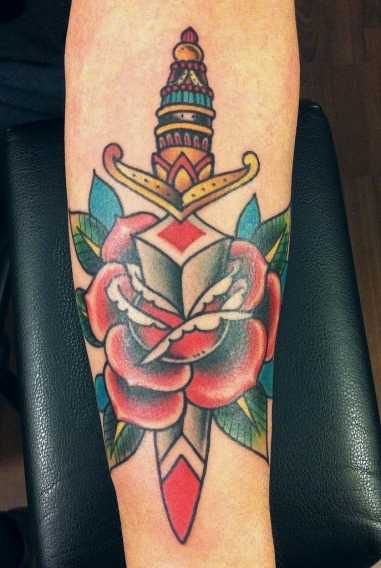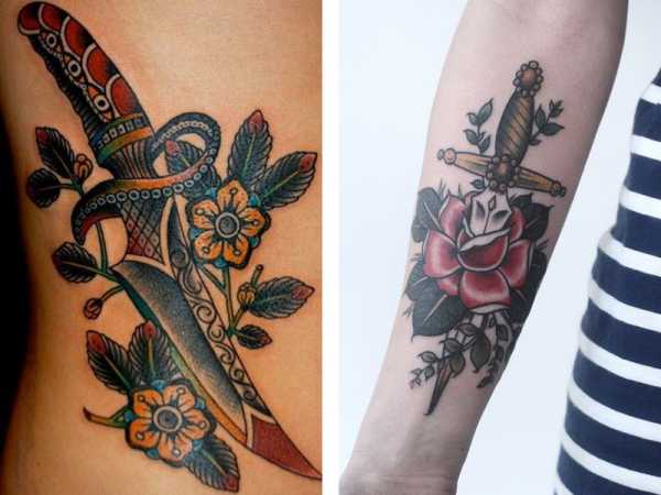 Целеустремленные и эффектные Скорпионы привыкли давать достойный отпор всем, кто их обижает. Поэтому отличной татуировкой для них станет изображение кинжала, который покажет их смелость, силу и, конечно, опасную сексуальность. Кстати, им подойдут розы или другие цветы с шипами.