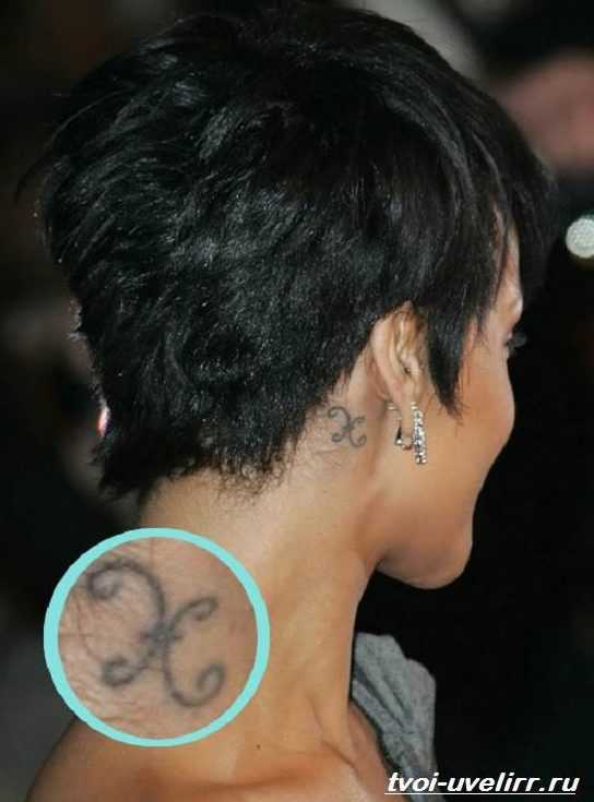 Тату знак зодиака рыбы за ухом Рианны