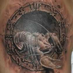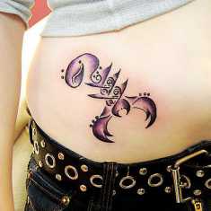 Татуировка с изображением знаков: Рак, Скорпион, Рыбы – прекрасный выбор для романтичных, заботливых, домашних натур, ценящих семью, уют и комфорт и умеющих защищать свое личное пространство.