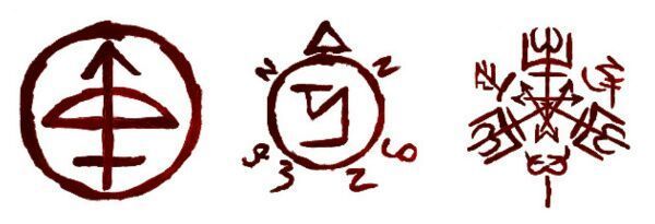 Отметку слева отследить немного сложнее. На одном из случайных веб-сайтов было написано, что оно предназначено для осуществления мечтаний и привлечения успеха, но не имело для этого названия. Я нашел что-то подобное в списке защитных сигилов. Обратите внимание, что в середине также есть трезубец!