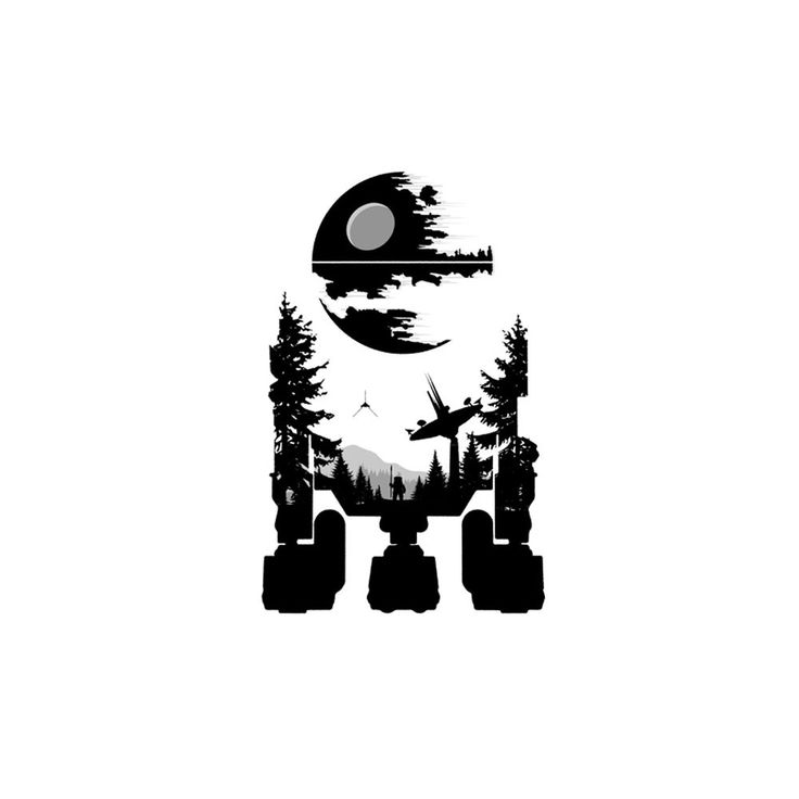 Первая идея состоит в том, чтобы просто вырезать изображение Звезды Смерти и использовать его в качестве трафарета для создания татуировки с негативным пространством, демонстрирующей основную кожу. Вторая идея состоит в том, чтобы взять изображение Звезды Смерти и удалить все детали, оставив только ее основные очертания.