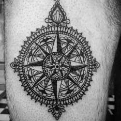 Узор с розой ветров на бедре