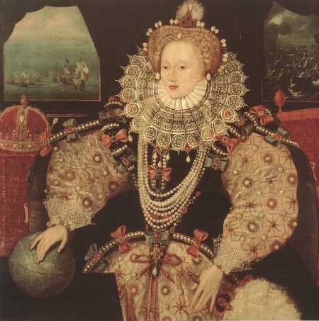 А «простой», уже привычный нам бант из ткани тоже начинает своё триумфальное шествие. Как известно, королева-девственница Елизавета Английская обожала роскошные наряды. И вот на одном из самых известных её портретов, написанном в честь разгрома испанского флота, Непобедимой Армады, в 1588 году, мы видим королеву в торжественном, призванном подчеркнуть славу победительницы, чёрно-белом костюме, буквально усыпанном жемчугом и… многочисленными красными (а на некоторых вариантах портрета – красными и голубыми) бантами. Они буквально везде – на рукавах, корсаже, юбке. Что ж, Её Величество была истинной женщиной.