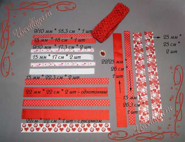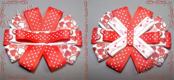 Многослойный плоский бантик «Красные сердца» (+видео) — Делаем своими руками