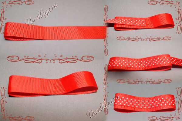 - Приготовьте так же ленту шириной 9/10 мм для серединки, и ленту шириной 22/25 мм для того,чтобы закрепить бант на повязку, заколку «автомат», ободок и т. д.