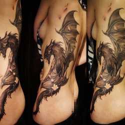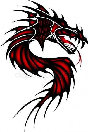Очень популярный символ для татуировок. Татуировки с таким изображением распространены и на Западе и на Востоке.Вполне возможно, что прообразом для этого мифического существа послужили динозавры. Огромные рептилии, жившие в древности.