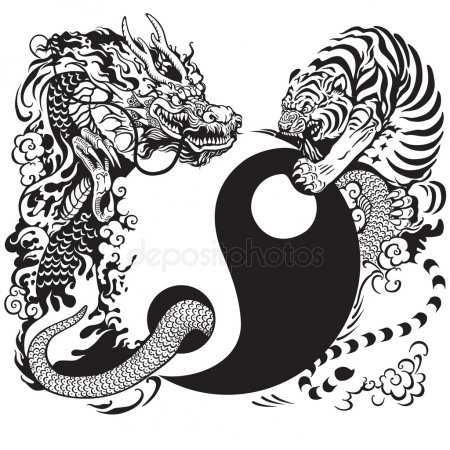 - Если в сюжете татуировки дракон соседствует с тигром — это влияет на значение символа. В случае если они находятся на одном уровне — это символизирует внутреннее равновесие человека. Говорит о совпадении желаемого с действительным. Ну или стремление к такому равновесию.