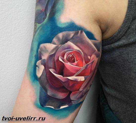 Цветная татуировка, значение которой придаётся сильной половиной человечества, может быть как простой, так и очень сложной. Большие цветные работы – дело очень затратное как по времени, так и по деньгам, однако, результат полностью оправдывает себя. Лучше всего цветные татуировки выглядят в стиле реализм, или так называемом 3-D стиле. Если вы присмотрели для себя именно такую татушку, тогда будьте готовы, что без цвета не обойтись. К тому же, очень важную роль в такой татуировке играют тень и блики, которые выполняются разными оттенками чёрного, серого и белого: именно они вдыхают в татуировку жизнь.