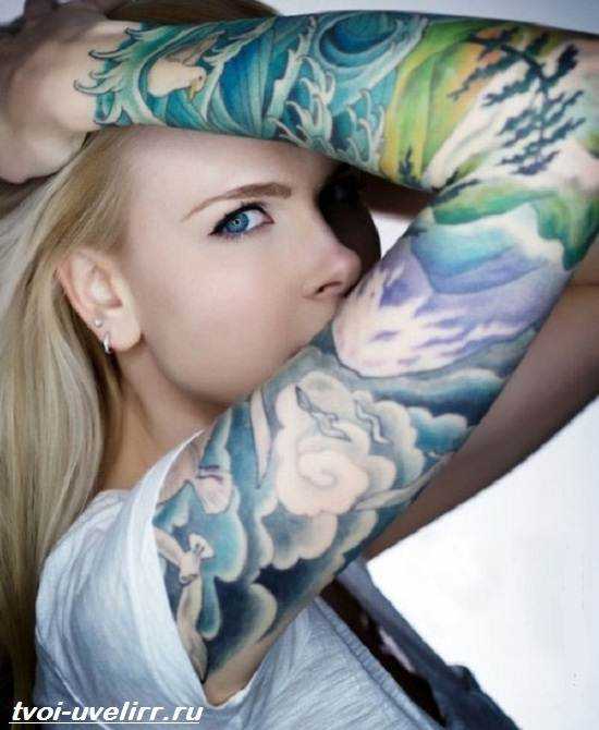 Переплатив за тату-рукав цветной, придется тратиться и на подержание их эстетики. Яркие краски сильнее стандартных чернил подвержены разрушающему действию ультрафиолета, бытовой химии, влаги.