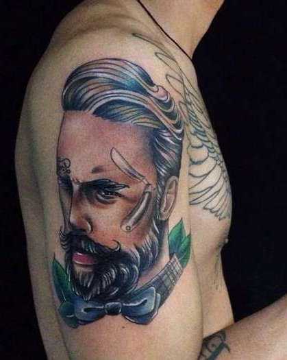 Цветная татуировка в виде портрета на плече