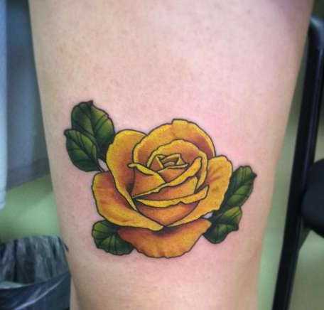 Желтая роза – цветная татуировок