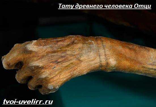 Мужчина пролежал во льдах около 5000 лет. Мерзлые покровы Отци татуированы. Нательные рисунки монохромные.