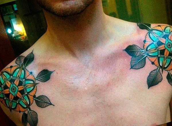 Истинных ценителей искусства татуировки нисколько не смущает высокая степень болезненности работы в области ключиц, где присутствует необыкновенно тонкий кожный покров и практически отсутствует жировая или мышечная прослойка. Конечно, рисунки, закрывающие обширные зоны тела, чаще выбирают именно мужчины, но в некоторых случаях и девушки решаются на такое. К примеру, работа тату-мастера может начинаться на шее и заканчиваться на ключице или на любом другом участке. Все зависит от размаха фантазии, предпочтений и терпения заказчика.