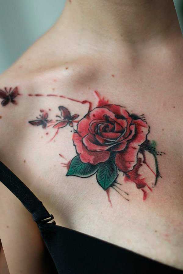 Женский пол нередко выбирает именно эту область тела для расположения рисунков разного содержания. Такого нельзя сказать о мужском поле, они используют ключицы немного реже, в основном там красуются фразы, рисунки на тему значимых событий, важные даты и имена. Дамский арсенал изображений в разы шире, чаще всего это: