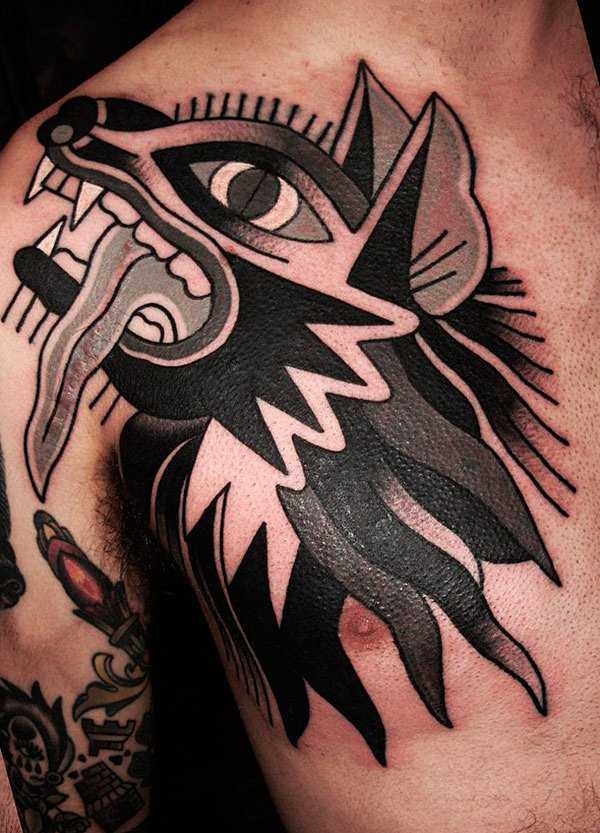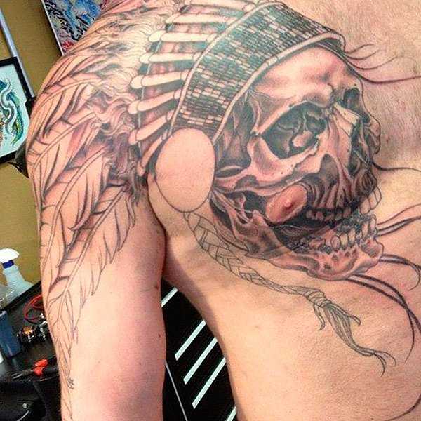 Мужчины, разумеется, тоже делают такие тату. Но они предпочитают наносить большие картины, когда площадь нанесения не ограничивается лишь ключицей. Начинается она, может, на шее, а заканчиваться на плече.