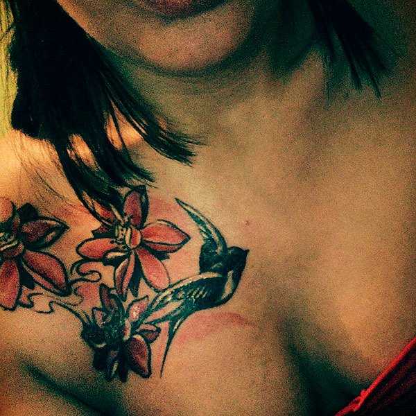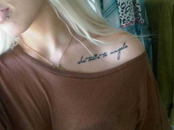 Татуировка на ключице в основном выбирается женским полом, объяснением этому может служить то, что именно эта часть тела не деформируется, даже если очень сильно поправится. Это практически единственная часть тела, которая не деформируется. Девушки предпочитают делать татуировки на ключице небольших размеров, однако, есть и исключения. Эскизом зачастую служат разнообразные цветы, надписи или небольшие птички.