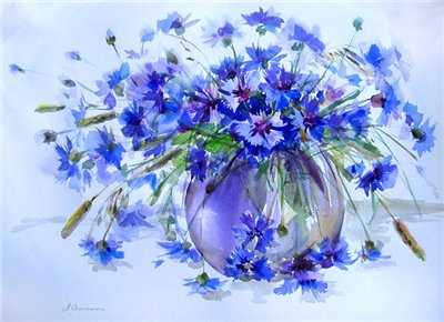 Голубые цветы в вазе.