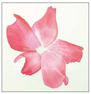 5. До того как краска высохнет, промокните блики и наметьте прожилки на каждом лепестке. Плавное изменение цвета можно применить для обозначения направления света. Аналогично нарисуйте остальные лепестки. Работайте над ними через один, чтобы не задеть еще влажный слой краски на соседнем лепестке, а когда они полностью высохнут, приступайте к пропущенным.