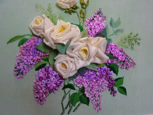 Интересно и объемно смотрится вышивка цветов из атласных лент