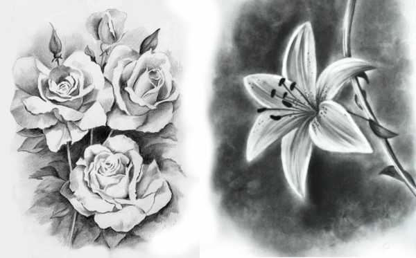 Созерцая дивные изображения цветов, поражаешься удивительному мастерству художников, способных точно отобразить такую красоту. Особенно необычно смотрятся рисунки цветов, нарисованные только карандашом, без раскрашивания цветными красками. На таких изображениях все детали отображают различными оттенками и толщиной линий одного цвета, придавая им объем и полноту.