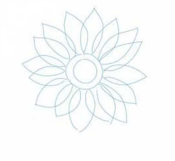 Их надо рисовать по кругу, постепенно увеличивая размер и смещая, относительно друг друга. Волны должны быть развернуты в сторону центра, а концы линий начинаться и заканчиваться на лепестках предыдущего ряда.