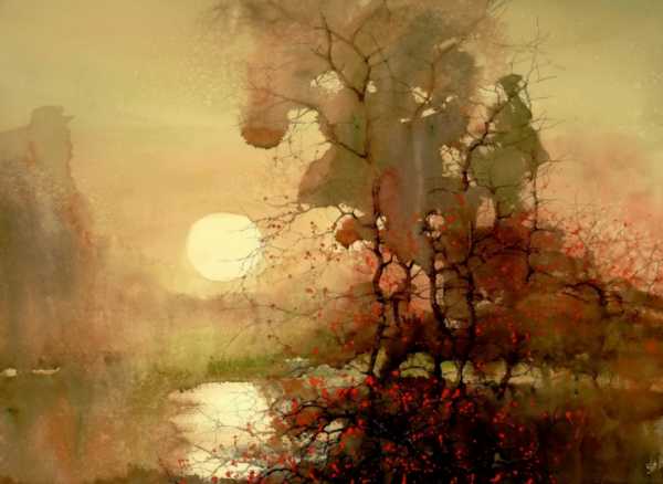 2. Выполнить этюд в акварели, мотив которого имеет несколько планов (берег реки с ярко выраженным первым планом – деревом, кустарником, строением и т.д. (рис.2.6)).