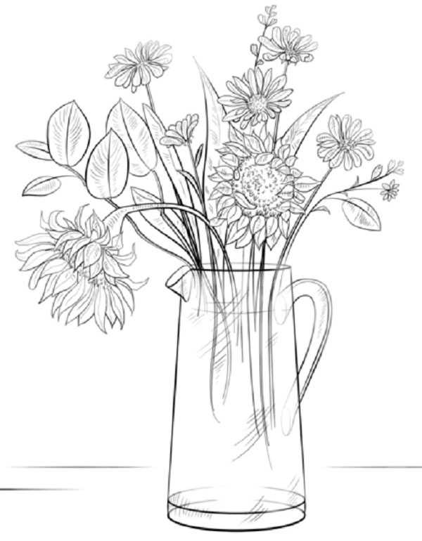 Совет! При помощи штриховки, разной интенсивности, прорисовать тени и оттенки. Это сделает цветы более натуральными и добавит им объема.