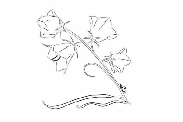 Тщательно вырисовать бутон колокольчика, с раскрывшимися лепестками.