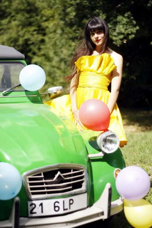 В мини платье с огромными мячами